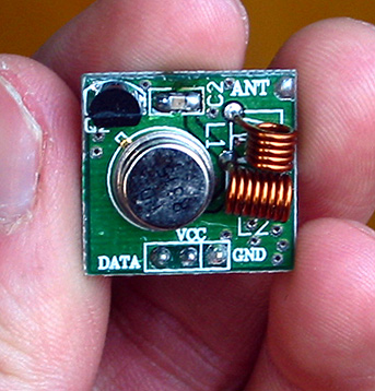 这是DF发射模块,体积:22x22x8毫米,右边是等效电路图