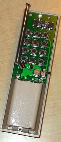 发射手柄上有1~12个按键,当按动时发射机上的其中一个按键时,电路会被立即激活而并进入发射状态,静态时不耗电。机内装配的电池只被用于点发射状态。当用于报警设定和电器开关时,每节电池一般可用到一年以上,电池的容量为45mAH。