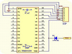 在线编程(ISP)是指设计人员能够在用户板上、不把芯片单独拿下来就能实现声音录制、修改、编程工作,能非常方便产品在成品化后做后期修改、调试工作,这在很多应用上非常重要。