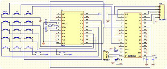 以下是一个89C2051单片机与PM50芯片接口的电路原理图,同时也是测试PM50语音合成效果的发码测试板,能够令用户选择播放PM50中的任意一段或多段的组合。其中89C2051单片机的源程序参见www.atvoc.com。