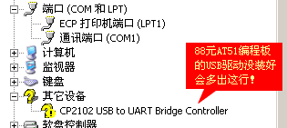 21、将88元的AT51板或者298元STC板跟电脑连接好后,如果没有多出的端口设备,说明驱动没有装好。