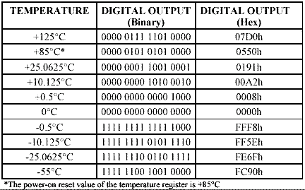 表1: DS18B20温度值格式表