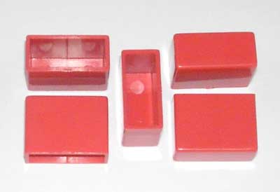 微型模块盒3种一包,红色、白色和透明色各一个。盒子最大内空尺寸:宽9.5*长23.5*深17.5mm2,做模块时,线路板上除了几个对外的基本引脚以外,其它元件都不要钻孔,直接装在铜皮面即可。